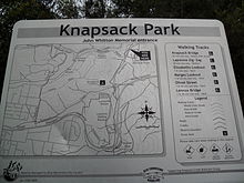 When visiting this park consideration of the terrain and which tracks you will have time to visit is worthwhile. The map shows Lapstone and Knapsack Creeks in fairly deep gullys made apparent by the contour lines being closer together there. Note that Elizabeth's Lookout has a picnic area marked and this would make a good rest stop as vegetation is fairly dense down in the park, for example, the creek bed below Knapsack Viaduct where a lot of the rocks are moss covered. It may be worth deciding whether to follow the rail trail (see external link below) which describes a walk to Knapsack Viaduct beginning and ending at Lapstone station, or a longer walk from Blaxland down Mitchell's Pass to firstly Lennox Bridge, Elizabeth's Lookout,back to Mitchell's Pass onward down to Emu Plains station (if travelling by train) via Centro Lennox shopping centre or the O'Donohue's Irish Pub near Emu Plains station. Another option would be walk from Lapstone station to Siding Lookout then down stairway to Knapsack Viaduct, with a possible descent to creek bed below it, but be sure to come back up the way you came, or cross the creek to where a sign indicates Elizabeth's Lookout(left) or Knapsack Creek bank(right), advise that probably best to go back up to either Elizabeth's Lookout or the deck of the viaduct and follow what was part of the Great Western Highway a few hundred metres down to John Whitton Memorial Place(carpark avail. here), walk back to Lapstone, or, on down to Emu Plains (3 km further, though now it is fairly level along the suburban setting of this section of the Great Western Highway),if experienced walker.